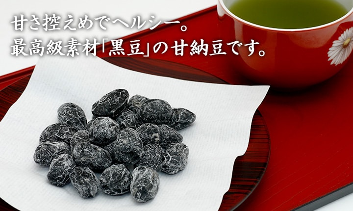 黒豆グラッセ「黒光」は、厳選された大粒の黒豆をじっくりと煮て、乾燥させた自然素材のお菓子。 「黒豆」を使った甘納豆です。大粒で歯ごたえがあり、また黒豆の香ばしさは何とも言えない美味しさ。その上、お砂糖は控えめでヘルシーです。